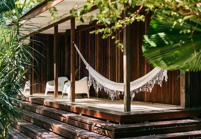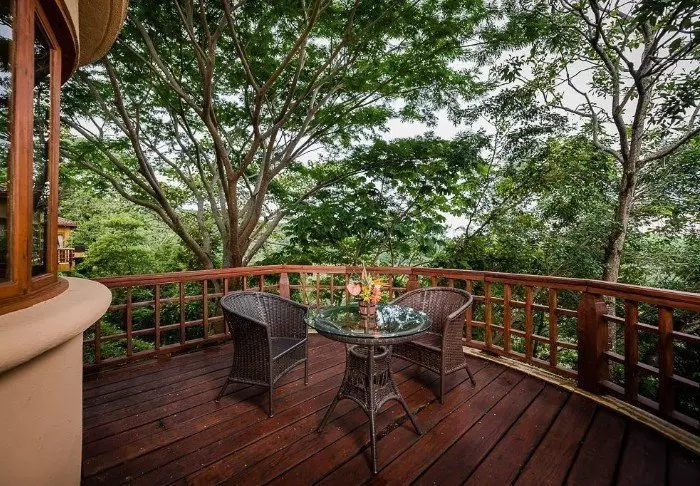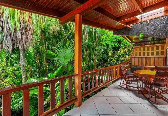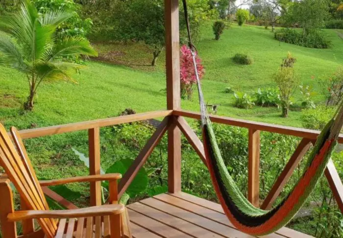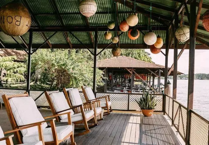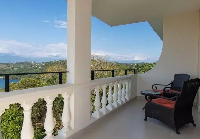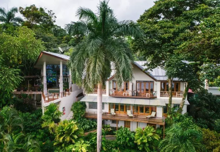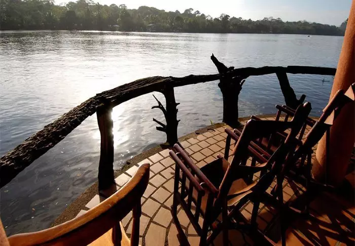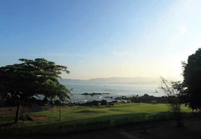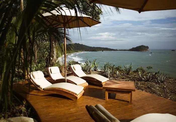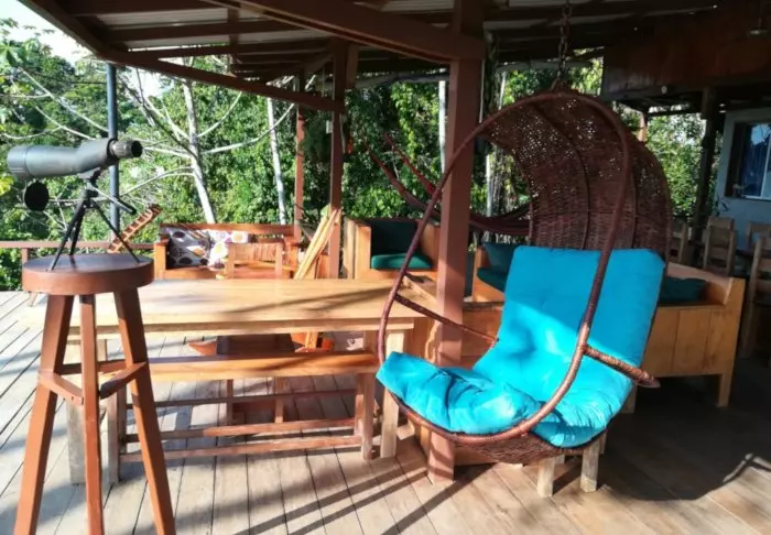 Fra verandaen kan slappe af og nyde udsigten til bugten og junglen.