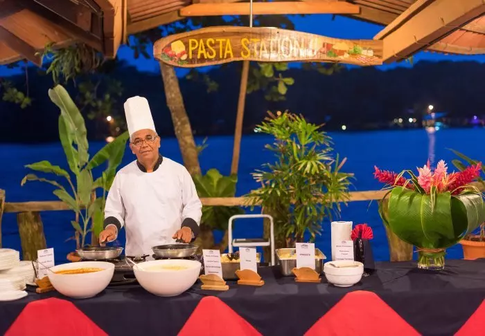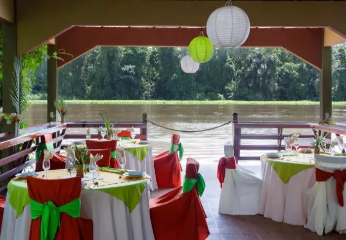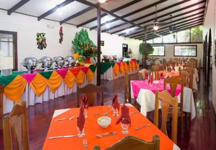 På dit ophold i Tortuguero er dine måltider inkluderet i prisen og de bliver serveret som buffet i Mambo restauranten, som ligger lige ved swimmingpoolen. Mod ekstrabetaling kan du reservere bord på lodgens flydende restaurant Katonga, og nyde din middag midt i regnskoven, imens du langsomt glider ned af Tortugueros kanaler (reservation påkrævet).