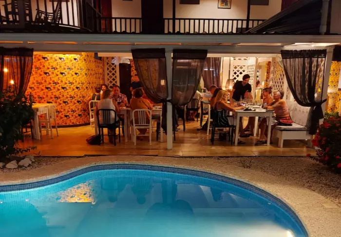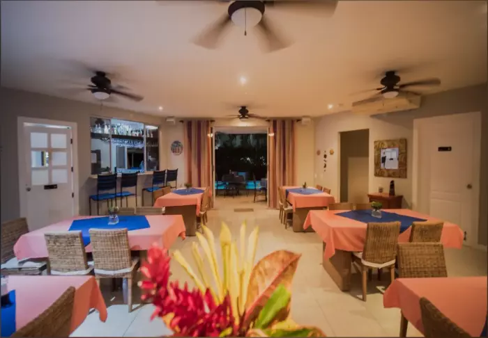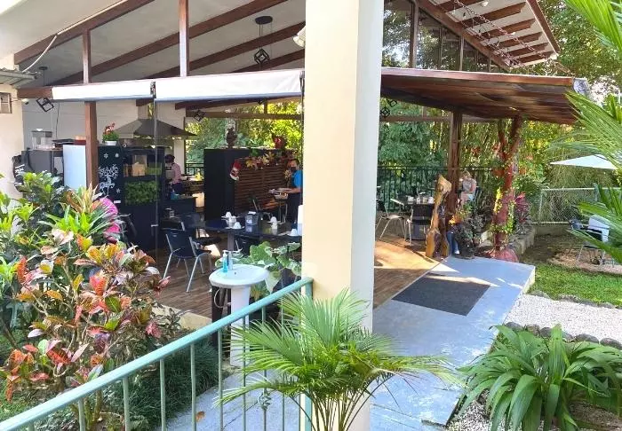 Hotellet er bygget sammen med restaurant MaMa Gui, og det er her din inkluderede morgenmad serveres. Restauranten har også åbent til frokost og aftensmad og serverer en spændende blanding af italiensk og costaricansk mad.
