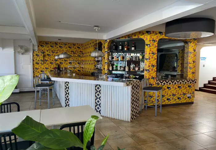 Den lille bar serverer kølige drikkevarer og drinks og lette snacks.