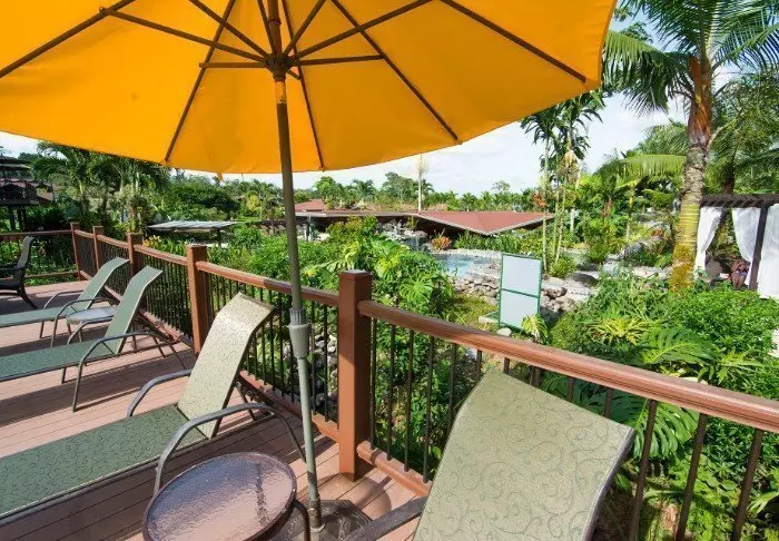 Der er et stort spa og fitness område. Alle værelser har egen privat terrasse med udsigt til vulkanen, hængekøjer, aircondition, fladskærms TV, adgang til Wi-FI, telefon, minibar/køleskab. Et resort man bare ikke har lyst til at forlade.