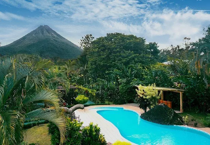 I hotellets overdækkede restaurant, hvorfra der også er en skøn udsigt til de grønne omgivelser, serveres din inkluderede morgenmad. Midt i hotellets frodige have ligger swimmingpoolen, hvor du kan tage en dukkert eller bare slappe af på en liggestol, mens du nyder udsigten til den imponerende Arenal-vulkan.