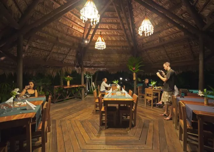 Restauranten på Laguna Lodge tilbyder en autentisk kulinarisk oplevelse midt i naturen. Den serverer en blanding af lokale og internationale retter, med friske lokale ingredienser. Maden nydes i de åbne spiseområder med udsigt over den frodige jungle og lagunen. Der er wi-fi i lodgens lobby og restaurant.