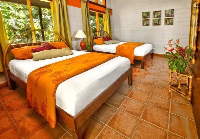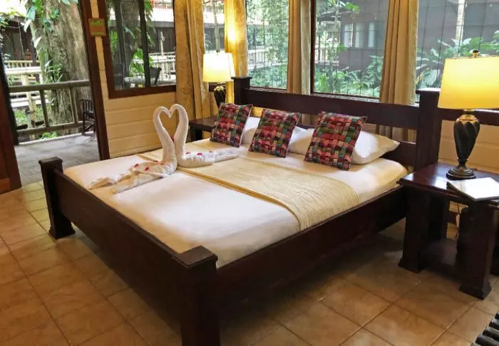 Lodgen har 110 rustikke værelser, som er simpelt indrettede, men alle med eget toilet/bad, loftsvifte, værdiboks og lille terrasse med udsigt til den frodige have.
