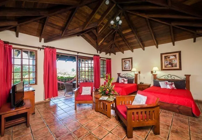 Lodgens 28 værelser er indrettet med hver deres farvetema og udsmykket med folkekunst, der fint harmonerer med naturen omkring lodgen. Hvert værelse har eget badeværelse med hårtørrer, toiletartikler og bruser med varmt vand. Fra alle værelserne er der udsigt til enten Turrialba-vulkanen eller -dalen.