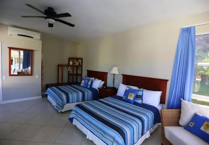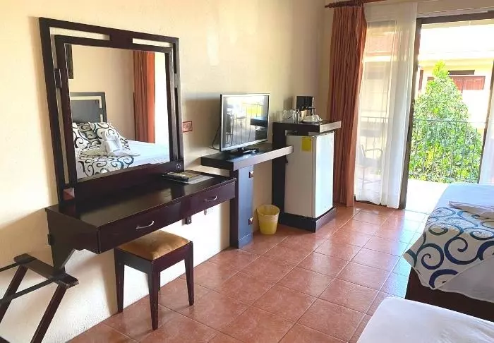 Hotellet er i 2 etager og har blot 24 værelser, der alle har privat terrasse eller balkon med udsigt til den frodige have eller én af de to små swimmingpools. Værelserne er meget farverige og af lidt ældre karakter, men her er alt, hvad du behøver såsom TV, loftvifte, aircondition, køleskab, værdiboks og eget toilet.