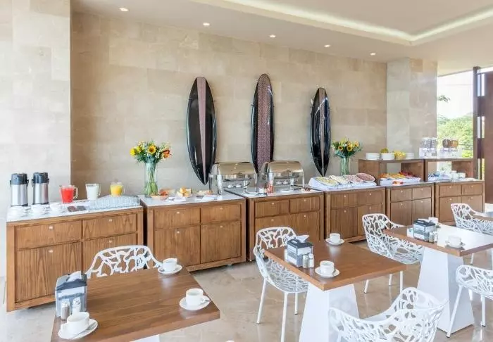 Din inkluderede morgenmad nydes i hotellets restaurant, der også har åbent for frokost og aftensmad. Her står kokkene klar i det åbne køkken og tilbereder lækre lokale- og internationale retter.