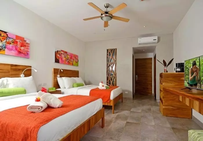 Værelserne er moderne indrettet i lyse farver med klinker på gulvene og farverige billeder på væggen. Alle værelser er udstyret med aircondition, loftsvifte, fladskærms-tv, værdiboks og privat badeværelse med hårtørrer. Der er gratis wi-fi på hele hotellet.