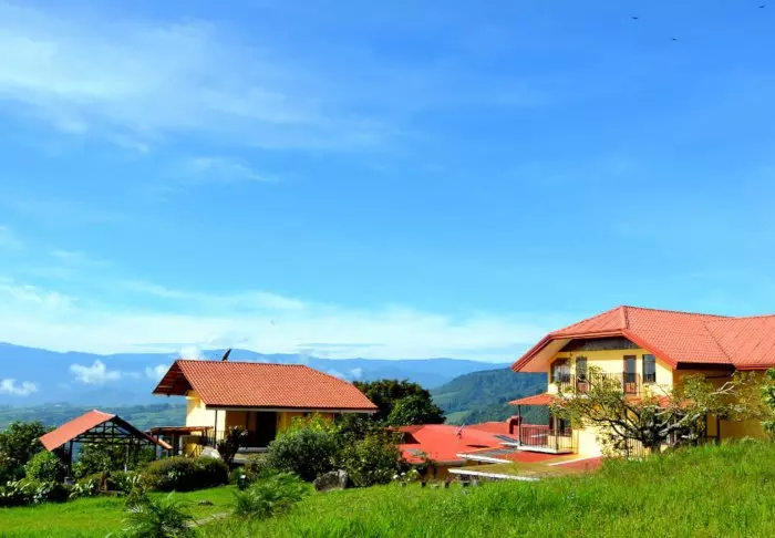 Knap 30 minutters kørsel fra Guayabo Nationalmonument finder du den charmerende Guayabo Lodge i skønne omgivelser med udsigt til bjerge, dale, floder og den aktive vulkan Turrialba. Med sin beliggenhed 1.500 meter over havet har lodgen ikke bare en fantastisk udsigt over området, men også behagelige kølige temperaturer. Det kan derfor også være en god idé at medbringe en varm trøje til de kølige aftener.