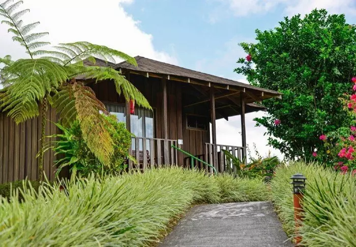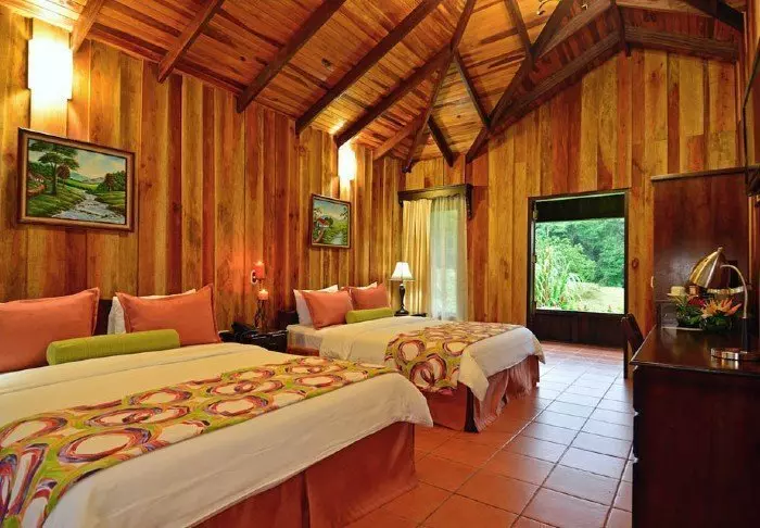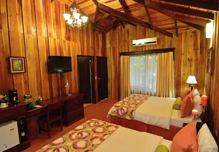 Hotellet har i alt 52 charmerende træhytter der er fordelt rundt på den 150 hektar store grund. De er alle udstyret med aircondition, telefon, værdiboks, kabel-tv, minikøleskab, kaffemaskine og wi-fi. Herudover har alle hytter 2 terrasser, den ene med udsigt til Arenal-vulkanen, den anden med direkte adgang til den fantastiske have med tropiske blomster.