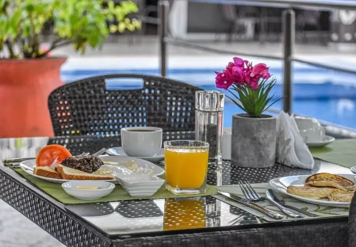 I dit ophold er der inkluderet morgenmad med tilhørende kaffe brygget på lokale costaricanske kaffebønner. Få en dejlig start på dagen med en slentretur til hotellets lille tropiske have, der er velbesøgt af fugle og sommerfugle. Der er rig mulighed for at dase ved swimmingpoolen med en god bog eller en frisk tropisk drink. Lette retter kan desuden købes i hotellets restaurant.