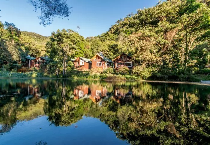 Lodgens 10 bungalows er bygget af træ og indrettet i varme farver med fine træpaneler på væggene, og med to dobbeltsenge kan de rumme op til 4 personer. Derudover er de udstyret med wi-fi, kabel-tv, køleskab, eget badeværelse med toiletartikler og hårtørrer samt et lille sofaområde, hvor du kan sidde og slappe af. Hver bungalow har også en veranda, hvor du kan sidde og nyde de frodige omgivelser.