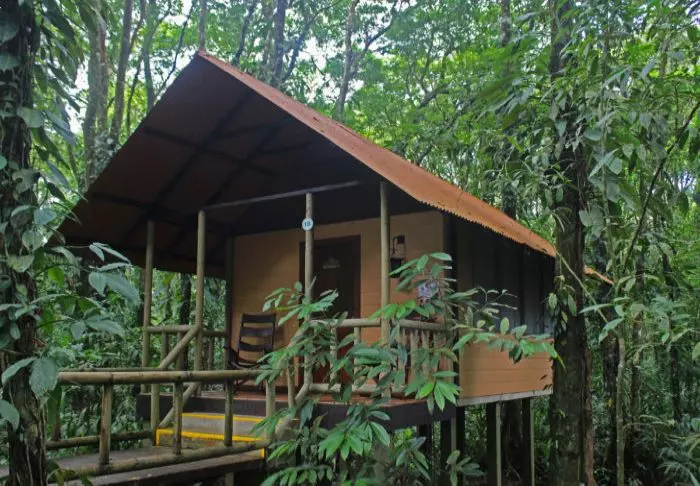 Hotellets 8 fine bungalows ligger på små høje midt i hotellets bakkede landskab og kan hver især rumme op til 4 personer. Alle er indrettet med loftvifte, værdiboks, myggenet over sengene og privat badeværelse med hårtørrer og toiletartikler. Til hver bungalow hører også en veranda med et par hængekøjer, hvor du kan slappe af efter en oplevelsesrig dag og nyde de naturskønne omgivelser. Du kan måske endda være heldig at se papegøjer, tukaner, kolibrier eller andre eksotiske fugle flyve forbi.