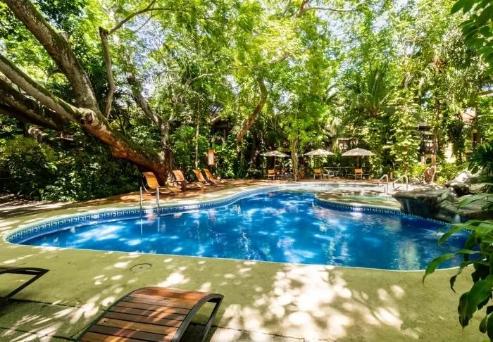 Hotellet har et lækkert poolområde med solvogne, hvor du kan slappe af, nyde de frodige omgivelser og lytte til skovens mange lyde.