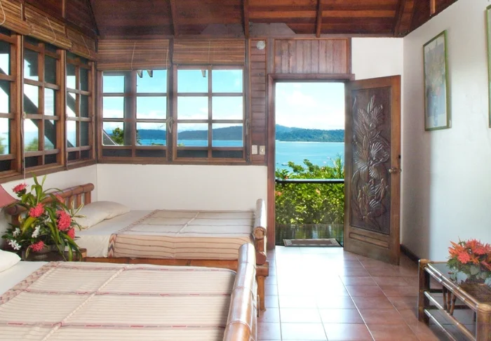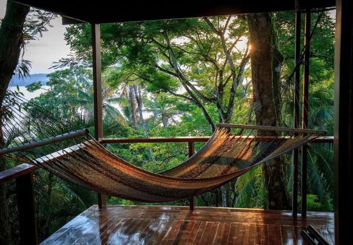 Fra verandaen kan slappe af og nyde udsigten til bugten og junglen.