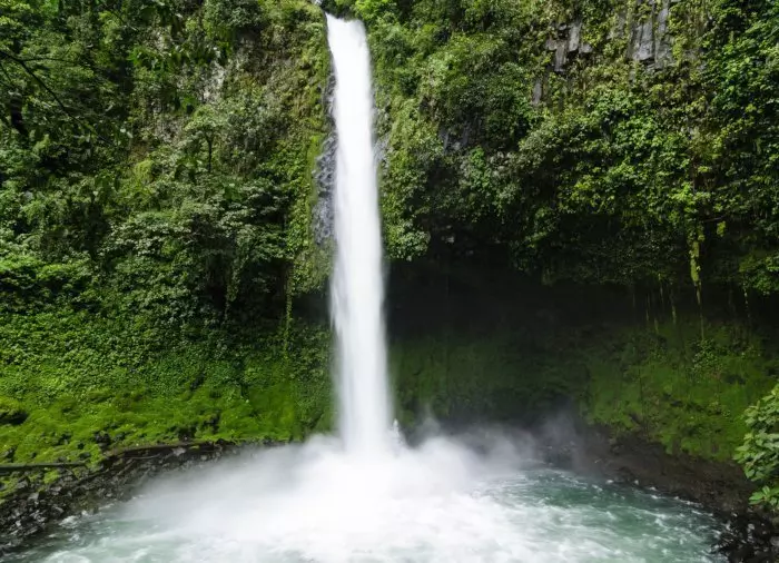 Du kan selv tage en taxa til det høje vandfald og bade i lagunen under vandfaldet. Taxaen vil sætte dig af på parkeringspladsen, hvorfra gåturen ned til vandfaldet tager ca. 20 min via en bro og trapper gennem den frodige regnskov, hvilket giver gode chancer for at spotte tukaner, aber og andre tropiske dyr på din vej. Du kan også besøge nogle af de varme kilder i området, du ikke prøvede i går, eller du kan tilkøbe en ekstra udflugt.