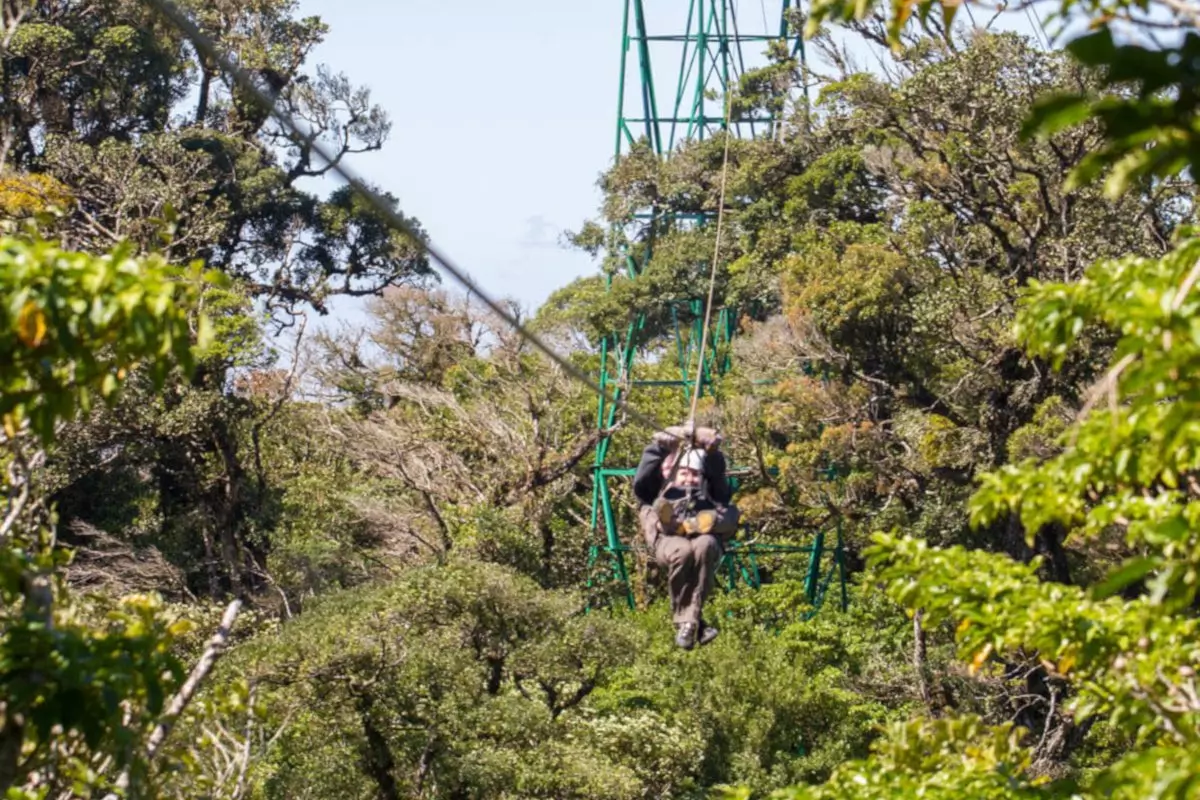 Her venter dig en spændende vandretur på ca. 2,5 kilometer i trætoppene! Mens du går på hængebroer mellem træerne, vil du kunne mærke den helt særlige og mystiske stemning, som tågedannelsen giver dette fortryllende landskab. Du er omgivet af orkidéer, bregner, mos, enorme træer og utallige plantearter, der vokser på træernes stammer. Fra den magiske skovs trætoppe kvidrer farverige fugle som den gyldenbrynede organist, den kobberissede smaragd, quetzal-fuglen og mere end 400 andre fuglearter, der gør skoven til et sandt paradis for fugleinteresserede.