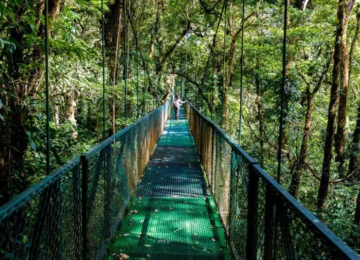 Tågeskovens eventyrlige landskab kan opleves på flere måder, bl.a. fra oven på en 2,5 km vandretur ad hængebroer i trætoppene. Du kan også prøve at zipline, som er en mavekildrende aktivitet, hvor du fastspændt i kabler suser blandt trætoppene.