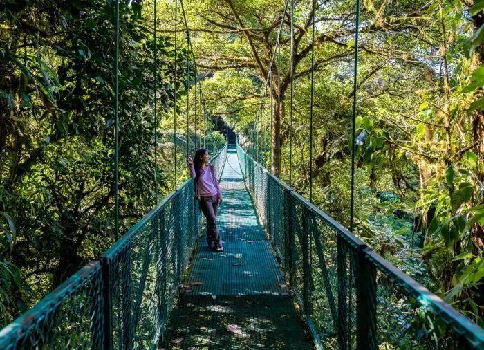 I dag skal du opleve Monteverde tågeregnskov fra oven, hvor en mavekildrende 2,5 kilometers vandretur ad hængebroer i trætoppene venter dig. Heroppefra kan du se og mærke den helt særlige og mystiske stemning, som tågedannelsen skaber. Du befinder dig i et eventyrligt landskab omgivet af store træer, bregner, orkidéer, mos og et utal af plantearter, der vokser på træernes stammer.
