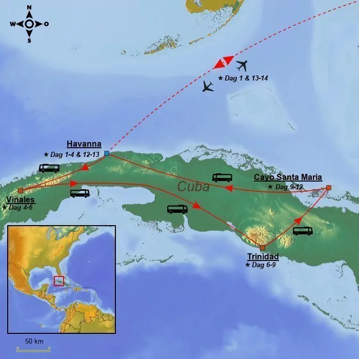 Så går turen mod Cubas nordkyst, hvor badeferie ved den lille idylliske ø, Cayo Ensenachos, venter. Øen er kendt for sine hvide sandstrande med azurblåt vand, som ofte anses for at være lidt mere uberørte og mindre overfyldte end strandende ved den lidt større og mere kendte ø, Cayo Santa Maria, som er placeret lige ved siden af. Turen derop tager ca. 6 timer med bus.