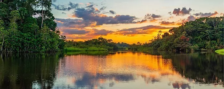 Næste stop er Amazonas-regnskoven, hvor du bor på en junglelodge med moderne bekvemmeligheder lige ned til den brusende Napo-flod. Fra lodgen tager en dygtig lokalguide dig med på vandre- og bådture ind i den frodige regnskov.
