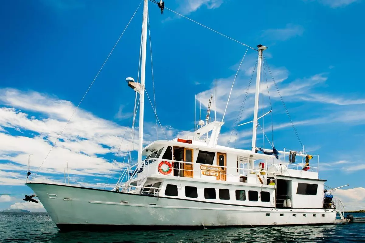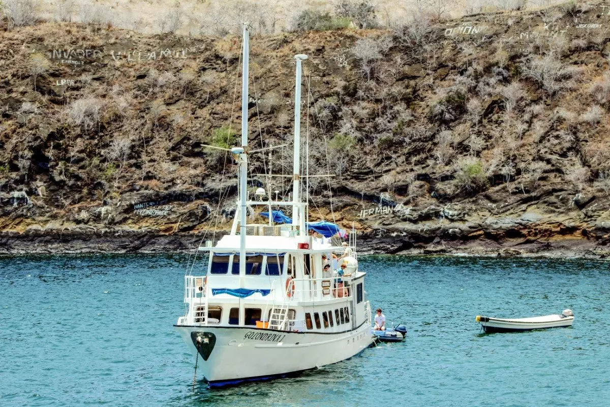 I Baltra Lufthavn bliver du hentet og kørt hen til båden Golondrina I, som skal være dit flydende hjem de næste 5 dage. Her bliver du indlogeret i din kahyt, hvorefter der er et lille velkomstmøde efterfulgt af frokost. På velkomstmødet vil din guide præsentere dig for kaptajnen, kokken og resten af besætningen og selvfølgelig de andre gæster på båden, inden det spændende program for eftermiddagen bliver gennemgået.