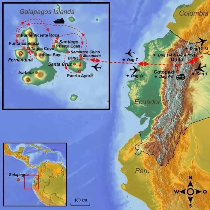 Bemærk, at programmet på Galapagos altid er med forbehold for ændringer. Dårlige vejrforhold eller anbefalinger fra lokale myndigheder kan resultere i, at ruten kan blive ændret med kort varsel.