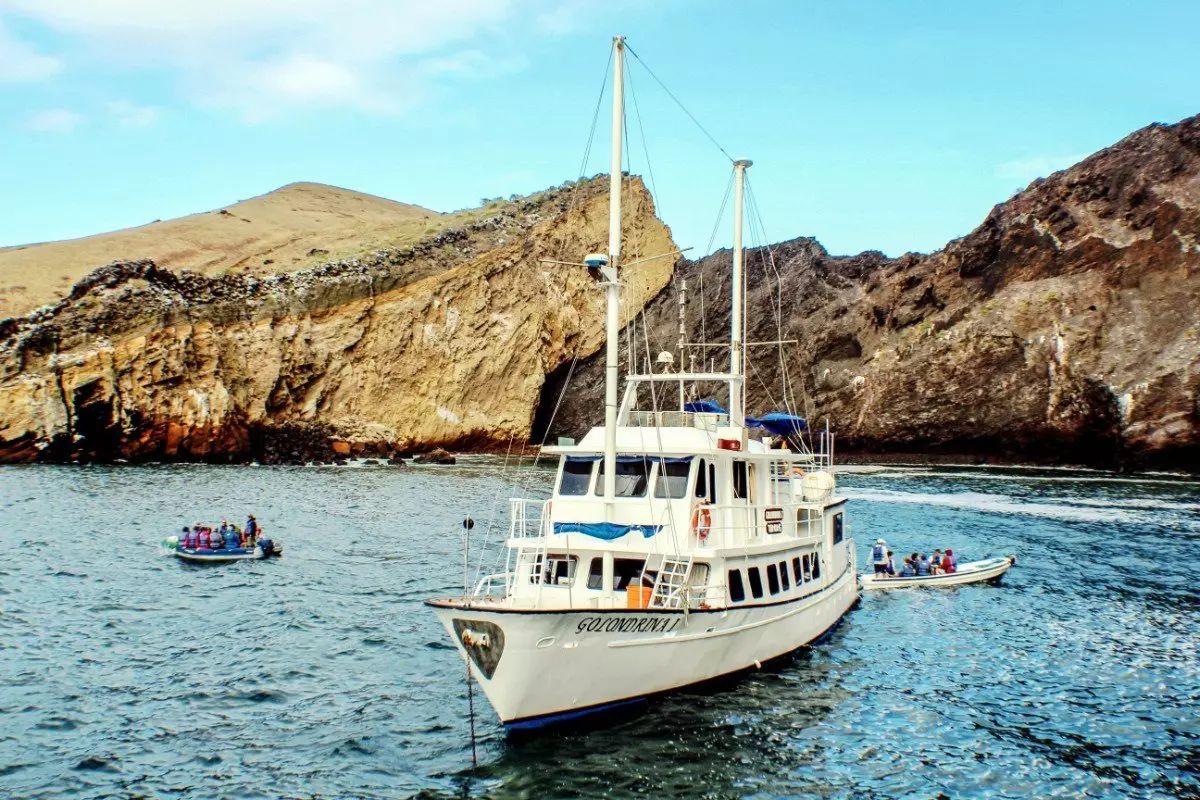 I Baltra Lufthavn bliver du hentet og kørt hen til båden Golondrina I, som skal være dit flydende hjem de næste 5 dage. Her bliver du indlogeret i din kahyt, og bagefter er der et lille velkomstmøde efterfulgt af frokost. På velkomstmødet vil din guide præsentere dig for kaptajnen, kokken og resten af besætningen og selvfølgelig de andre gæster på båden, inden eftermiddagens spændende program bliver gennemgået.