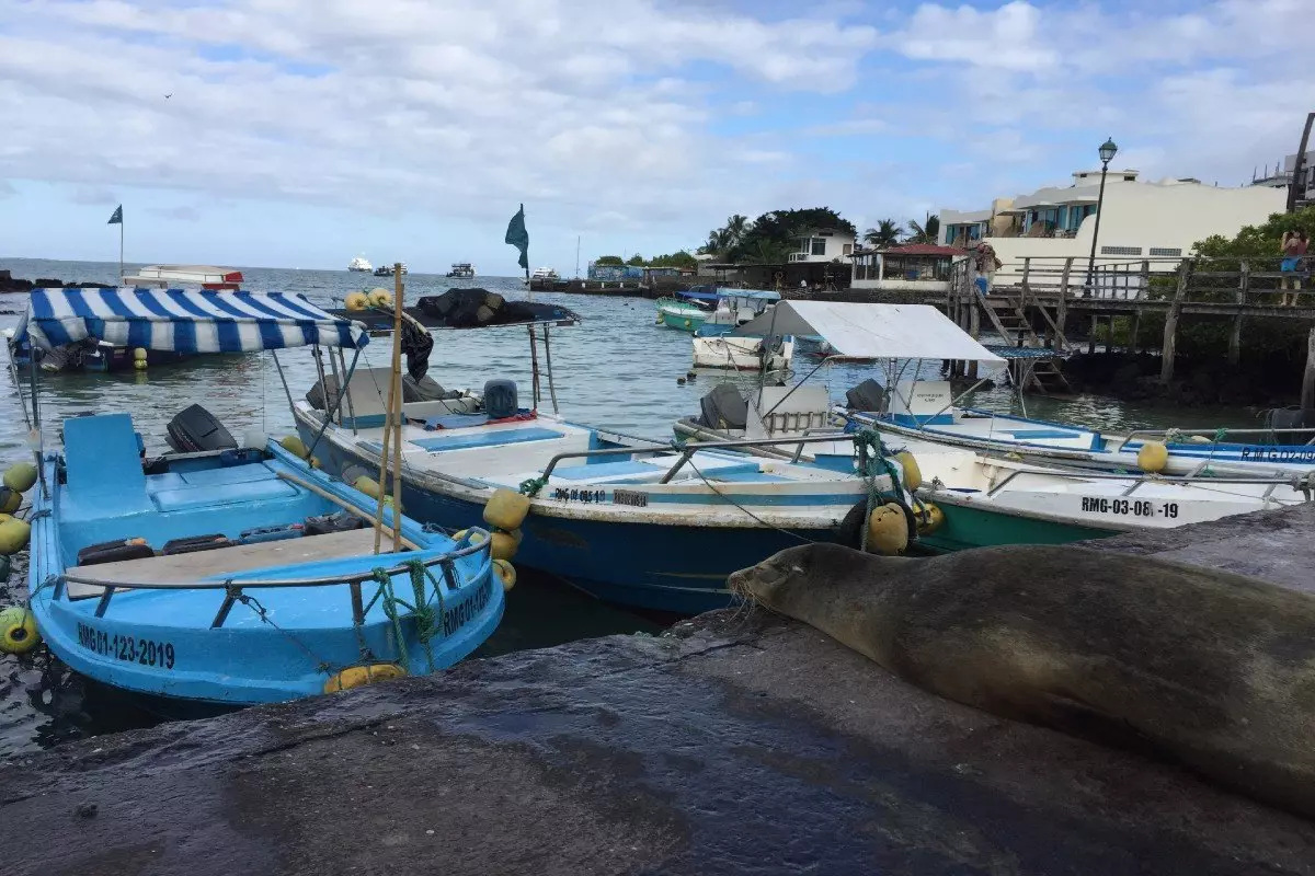 Du kan også blot gå en tur rundt i Puerto Ayora og opleve livet omkring det lille fiskemarked på Avenida Charles Darwin, hvor sultne og nysgerrige søløver og pelikaner gerne kigger forbi. Nede ved molen er der også altid masser af liv i vandet med farverige krabber, rokker og hvidtippede revhajer samt havleguaner, der holder til på klipperne.