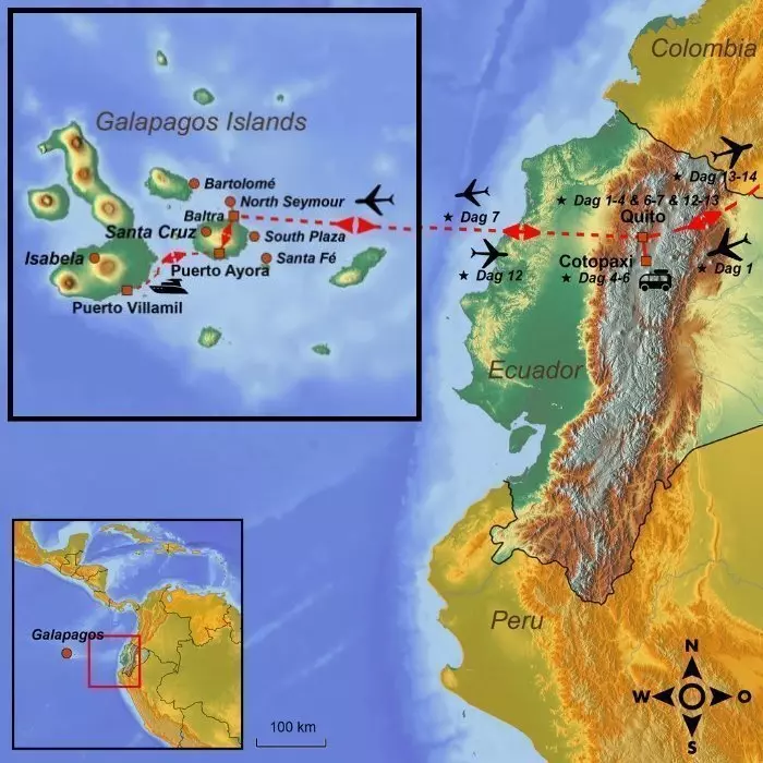 Rejsen afsluttes med 6 dages ø-hop på de unikke Galapagos-øer, hvor du besøger 3 forskellige øer. Glæd dig til at opleve den hyggelige stemning på øerne og selvfølgelig den betagende natur og det fascinerende dyreliv. Her kan du bl.a. møde den enorme galapagosskildpadde, søløver, havleguaner, landleguaner, revhajer, havskildpadder, flamingoer og blåfodede suler, for blot at nævne nogle få.