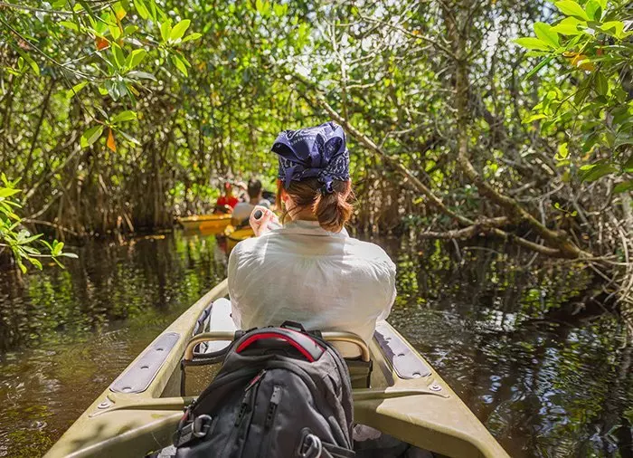 Ca. kl. 13.00 er det tid til en times pause og en dejlig frokost på en lokal restaurant på Lembongan. Når sulten er stillet, skal du opleve den fantastiske mangrove skov, der dækker det meste af den nordøstlige del af Lembongan. Du kan på stedet vælge, om du vil nyde den stille og fredfyldte tur i enten kajak eller i en lille båd. Mangroven har vigtige funktioner for økosystemet i området, idet den opsamler 50 gange mere CO2 end et almindeligt træ og er med til at give liv til de mange koralrev.