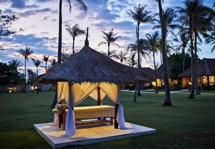 På Gili Trawangans sydspids ligger det luksuriøse hotel Pondok Santi Estate. Hotellet blev i 2005 opført på en gammel kokosplantage, der i dag er forvandlet til en tropisk have.
