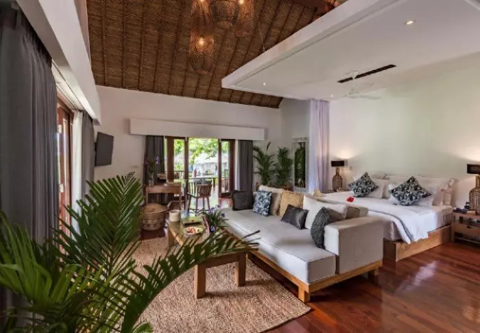 Hotellet består af 18 private bungalows bygget i tropisk stil af bæredygtige og naturlige materialer. Samtlige bungalows har elegant himmelseng med myggenet, wi-fi, aircondition, minibar, te- og kaffefaciliteter samt delvist åbent badeværelse med bruser, badekåbe og hårtørrer. På verandaen kan du slappe af med en god bog og nyde den stille brise.