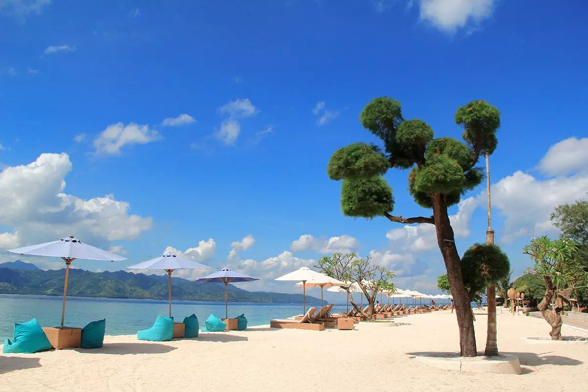 Rejsen fortsætter til Gili Trawangan, som er én af de tre Gili-øer. Gili Trawangan er især populær på grund af sine strande og gode muligheder for både dykning og snorkling, hvor du bl.a. kan opleve havskildpadder. Om aftenen kan du slænge dig i en sækkestol og nyde en drink, mens solen stille går ned bag vulkanen Mt. Agung på Bali.