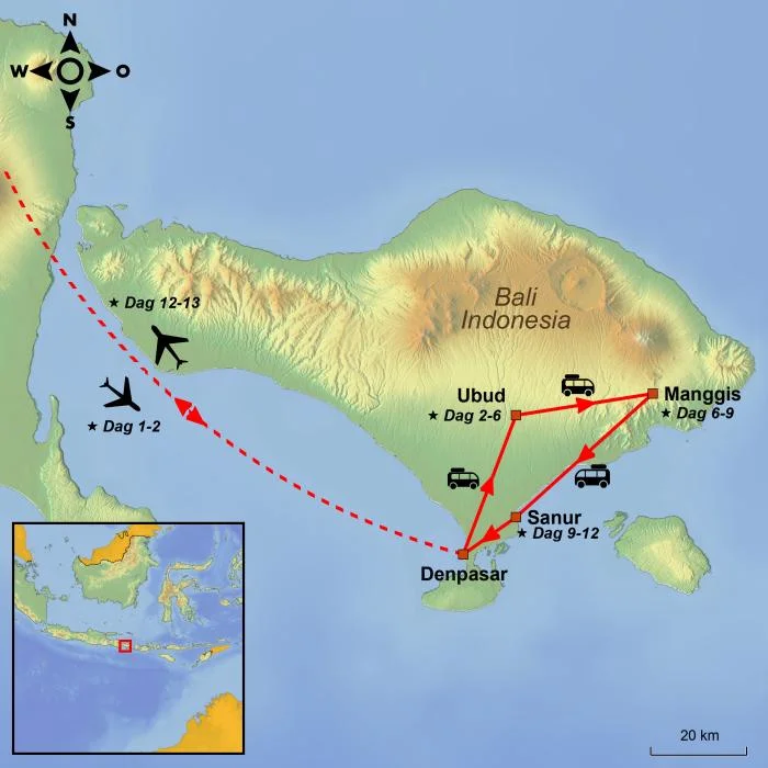 Rejsen afsluttes med et par rolige dage i den hyggelige badeby Sanur, hvor du kan nyde solen, tage en snorkeltur eller blot slappe af ved stranden, inden turen går hjemad.