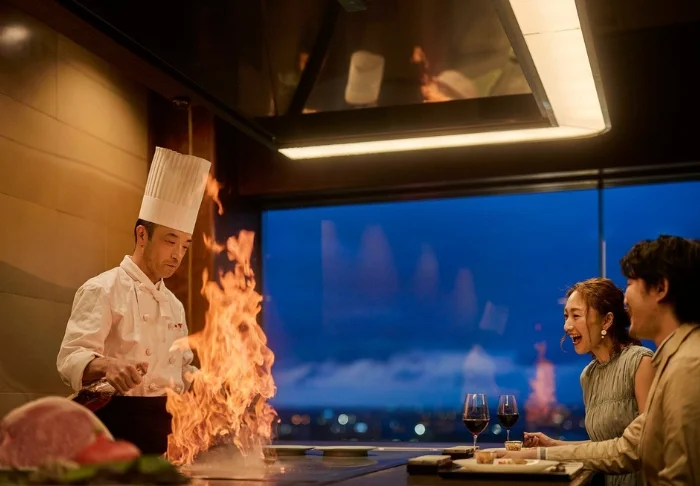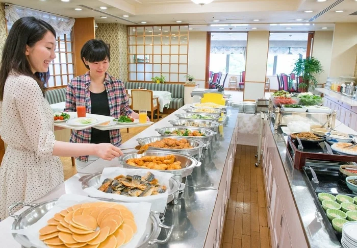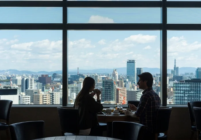 Hotellets helt store hjørnesten er uden tvivl restauranten på øverste etage, hvor en spektakulær panoramaudsigt over by og bjerge udfolder sig i et væld af farver, der skifter med årstiderne. Her kan du se frem til en indbydende morgenmadsbuffet, der kombinerer sæsonaktuelle råvarer fra den nærliggende egn med gode smage fra både det japanske og det internationale køkken.