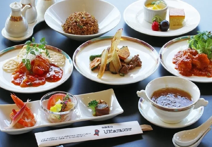Måltiderne er en central del af oplevelsen på Hida Hotel Plaza, og du kan vælge mellem flere specialiserede restauranter, hvor dygtige kokke tilbereder en bred vifte af retter baseret på sæsonens råvarer fra Hida‑regionen. Morgenmaden serveres i hotellets hovedrestaurant som buffet og byder på både japanske og vestlige morgenfavoritter.
