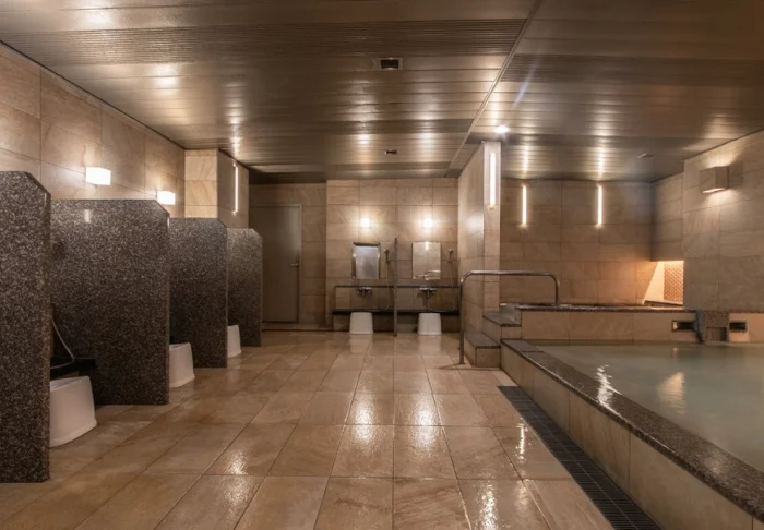Efter en dag med oplevelser i Kanazawa kan du slappe af i hotellets sentō. Her venter varme bade med silkeblødt vand, hvor ultrafine bobler fremmer følelsen af afslapning og velvære. Du kan også nyde det behagelige boblebad, der lindrer trætte muskler.