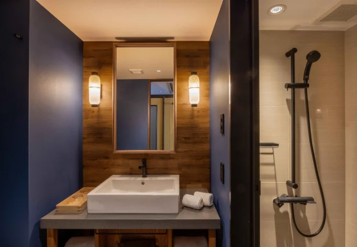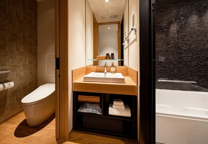Du bor som udgangspunkt i et elegant Standard-værelse, indrettet i afdæmpede nuancer med inspiration fra Edo-periodens traditionelle farvepalet. Her mødes japansk minimalisme og moderne design i et harmonisk udtryk, hvor du har alt, hvad du behøver, såsom wi-fi, aircondition, minikøleskab, tv og elkedel, så du kan starte morgenen med en friskbrygget kop te eller kaffe. Badeværelset er desuden praktisk indrettet med washlet-toilet, badekar med bruser, hårtørrer, slippers, japansk pyjamas og et udvalg af toiletartikler.