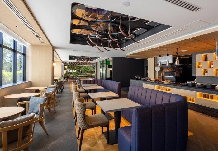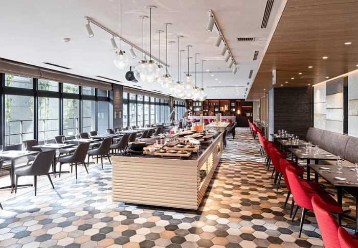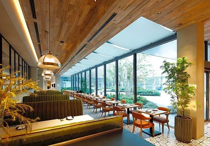 Under måltiderne byder hotellets restaurant på en international gastronomisk oplevelse, hvor det japanske, kinesiske og vesteuropæiske køkken mødes i fin symfoni. Menuen er sæsonbestemt og omfatter en varieret morgenmad med lokale råvarer, friske juices og æg fra fritgående høns. I løbet af dagen kan du desuden nyde et glas vin eller en kop friskbrygget kaffe eller te i lobbyens rolige lounge.
