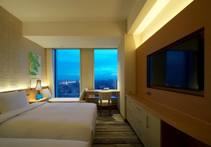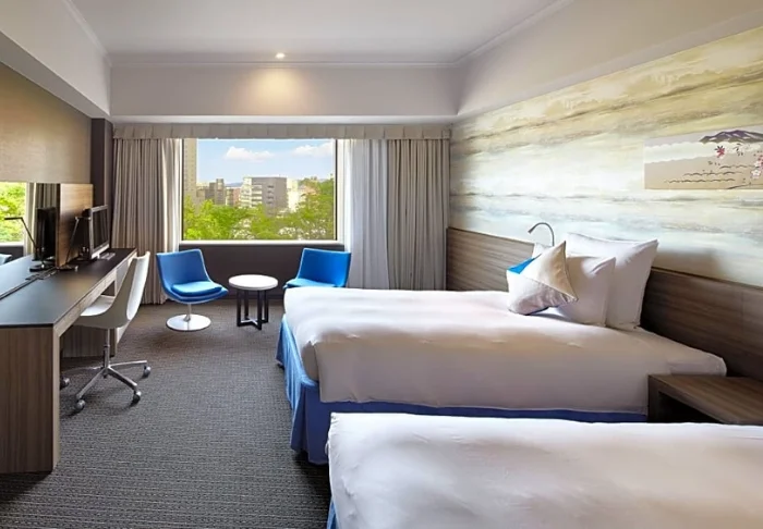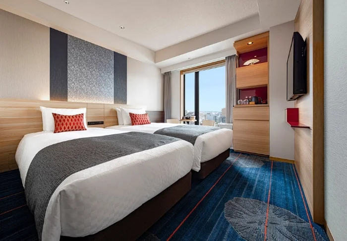 Værelserne er rummelige og indrettet i en japansk-vestlig stil. De store vinduer giver et behageligt lysindfald, og sengene sikrer en god nattesøvn efter en dag fyldt med eventyr. Værelserne er udstyret med aircondition, wi-fi, minikøleskab, værdiboks og el-kedel, mens badeværelserne byder på hårtørrer og toiletartikler.