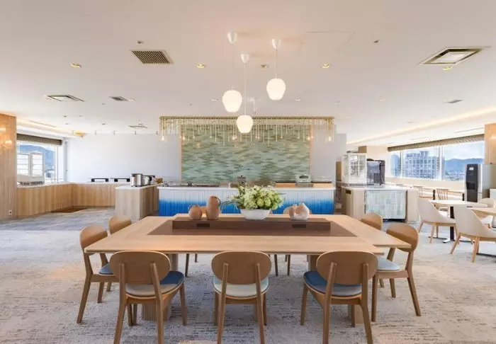 Restauranten, The Dining, har åbent både morgen, middag og aften, og her kan du vælge mellem lækre japanske, kinesiske eller vestlige retter.
