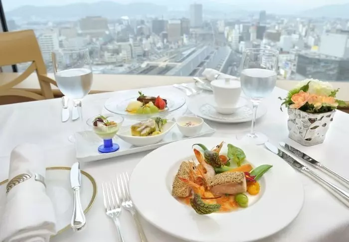 Hotellets restaurant, Confrere, på 25. etage serverer en udsøgt blanding af japanske og internationale retter lavet på lokale råvarer. Prikken over i’et er udsigten over Hiroshima og de omkringliggende Setouchi-øer.