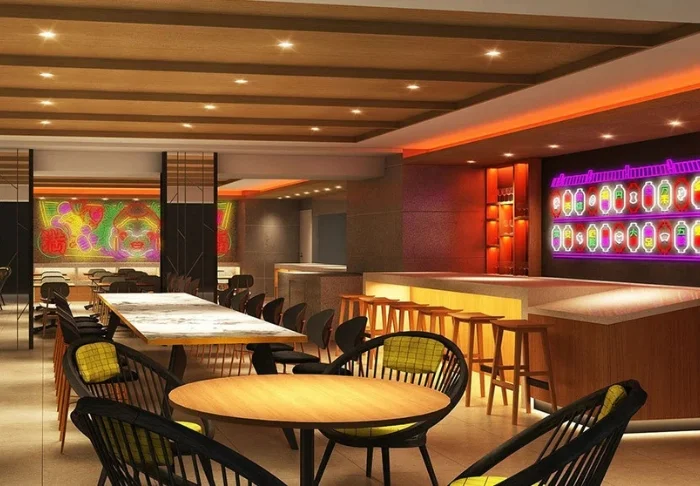 Med morgenmad inkluderet under opholdet venter en smagfuld start på dagen i hotellets restaurant. Her kan du se frem til en international buffet med varme retter, friskpresset juice og andre indbydende serveringer. Har du lyst, kan du vende tilbage om aftenen, hvor restauranten har forvandlet sig til et afslappet, pub-lignende spot med neonlys og et udvalg af drikkevarer og retter, der matcher den farverige stemning.