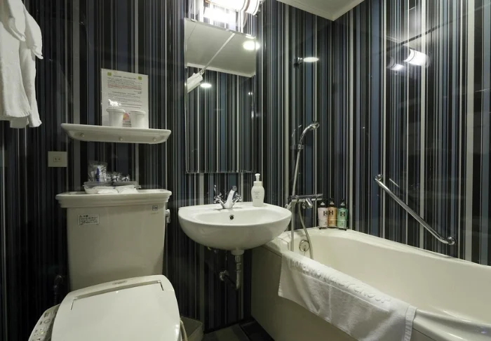 Du bor som udgangspunkt i et elegant Standard-værelse, indrettet i afdæmpede nuancer med inspiration fra Edo-periodens traditionelle farvepalet. Her mødes japansk minimalisme og moderne design i et harmonisk udtryk, hvor du har alt, hvad du behøver, såsom wi-fi, aircondition, minikøleskab, tv og elkedel, så du kan starte morgenen med en friskbrygget kop te eller kaffe. Badeværelset er desuden praktisk indrettet med washlet-toilet, badekar med bruser, hårtørrer, slippers, japansk pyjamas og et udvalg af toiletartikler.