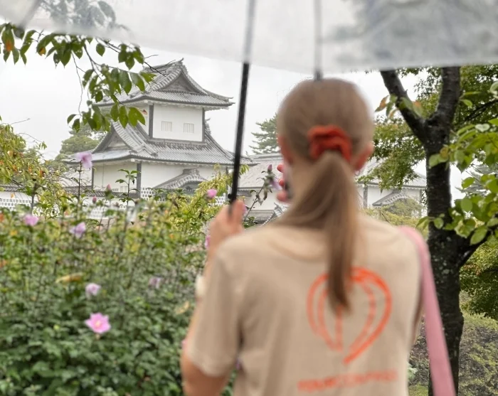 Er du tidligt oppe, kan du med Kanazawas velfungerende busnet nå at lægge vejen forbi flere af byens seværdigheder. I Kenrokuen, en af Japans mest anerkendte haver, kan du opleve en stemningsfuld morgenro i smukke omgivelser. Her bevæger du dig gennem et harmonisk landskab af små søer, stenlanterner, te-pavilloner og sirligt beskårne træer, hvor hver detalje er præget af omhu og æstetik. Haven ændrer udtryk med årstiderne og byder året rundt på nye nuancer, dufte og stemninger.