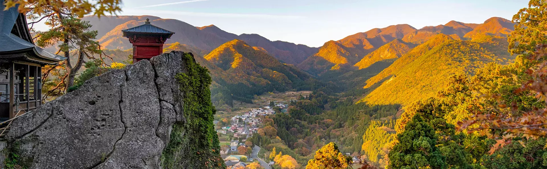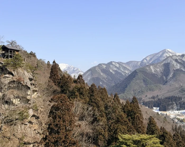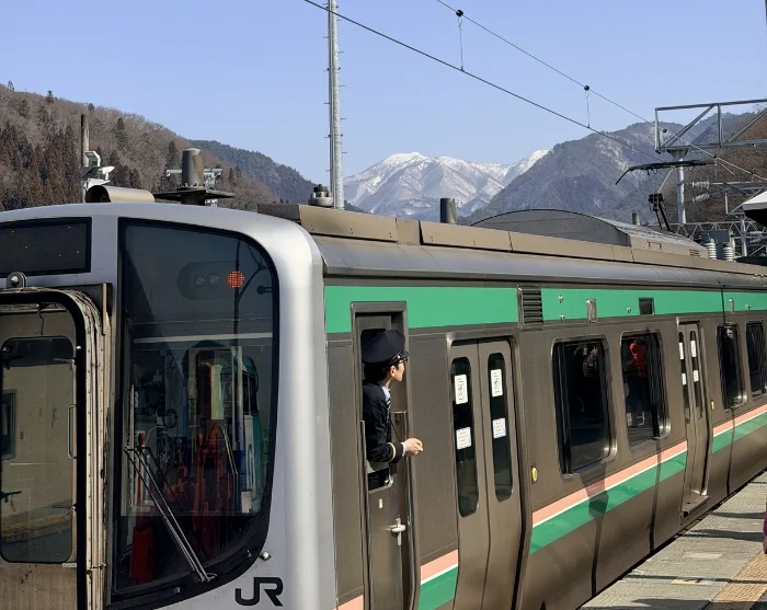 I hotellets lobby bliver du mødt af din guide, og sammen tager I lokaltoget mod Yamadera Station. Under togturen kan du opleve, hvordan landskabet gradvist skifter karakter, mens byens rytme afløses af kuperet terræn med grønne dale og skovklædte bjergsider.