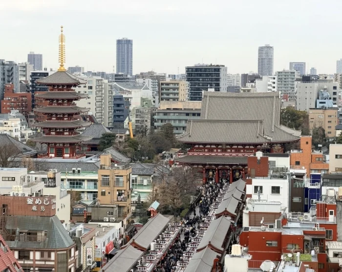 Du kan begynde i det livlige Asakusa-kvarter, hvor du finder Tokyos ældste og mest berømte tempel, Senso-ji. Mod templet går du ad Nakamise-dori, hvor duften af nystegte snacks blander sig med fristelsen fra boder fyldt med lykkecharms, vifter og lokale specialiteter. Et par gader derfra hersker en helt anden ro på Kappabashi Street, hvor småbutikker tilbyder japansk porcelæn og kokkeknive side om side. Kigger du op, rejser Tokyo Skytree sig mod himlen som et moderne vartegn. Du kan nøjes med at beundre tårnet nedefra eller, mod forevisning af billet, tage turen op og nyde den betagende udsigt over metropolen.