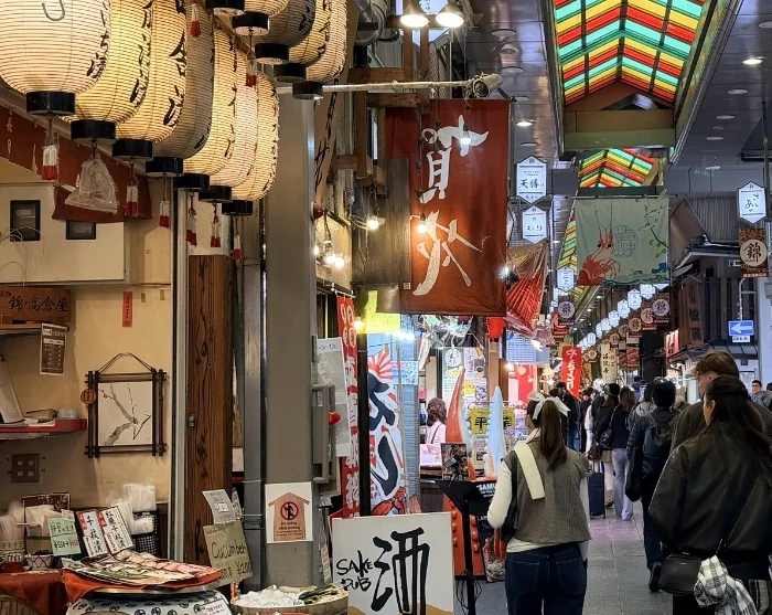 Den kulinariske byvandring afsluttes ved Kuromon-markedet, et livligt madmarked med duften af friskgrillet fisk, dampende supper og frugt i præcise, pastelfarvede opstillinger. Her får du mulighed for at smage sprød takoyaki fyldt med blæksprutte, inden du enten fortsætter på egen hånd eller vender tilbage til hotellet med din guide.