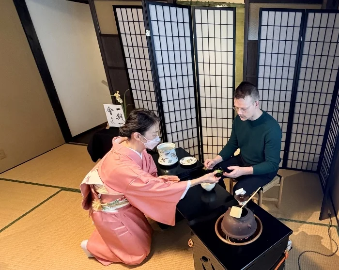 Dagens kulturelle højdepunkt er uden tvivl deltagelsen i en traditionel teceremoni, hvor du får et unikt indblik i nogle af Japans ældste traditioner. I rolige og intime omgivelser bliver du først budt på en lille japansk snack, inden du får lov til at overvære, hvordan husets kyndige temester tilbereder traditionel japansk matcha-te efter alle kunstens regler. Du smager den færdige te og får en introduktion til ritualets sirlige bevægelser og betydning, hvorefter du under kyndig vejledning selv kan prøve at piske din egen skål matcha til fint grønt skum. Ritualet rummer århundredgamle traditioner og giver et dybt indblik i japansk æstetik, nærvær og respekt for detaljen.